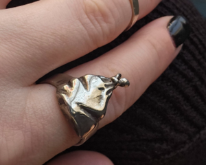 Each piece is carved, melted, dripped, and sculpted one at a time by me using jeweler's wax. The wax is then made into a mold and then melted out by pouring molten metal into the mold creating a rough cast of the piece. I then hand polish, nurture, set stones, and occasionally decide what enchantments I think the piece would have. It's been fun musing with my friends and family what kind of magic we would imagine some of these pieces to hold. ♥