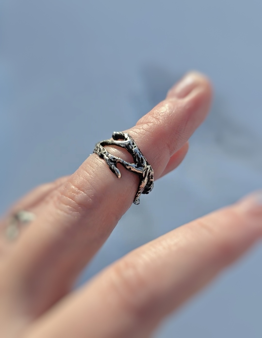 A one of a kind coiled branch ring fit for a druid or a forest witch.